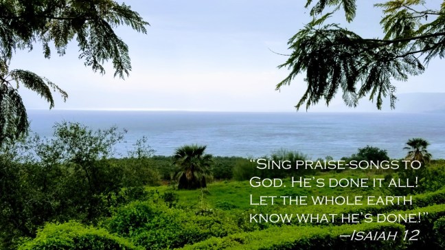 And you will say in that day, “I thank you, God . You were angry but your anger wasn’t forever. You withdrew your anger and moved in and comforted me. “Yes, indeed—God is my salvation. I trust, I won’t be afraid. God —yes God !—is my strength and song, best of all, my salvation!” Joyfully you’ll pull up buckets of water from the wells of salvation. And as you do it, you’ll say, “Give thanks to God. Call out his name. Ask him anything! Shout to the nations, tell them what he’s done, spread the news of his great reputation! “Sing praise-songs to God. He’s done it all! Let the whole earth know what he’s done! Raise the roof! Sing your hearts out, O Zion! The Greatest lives among you: The Holy of Israel.”