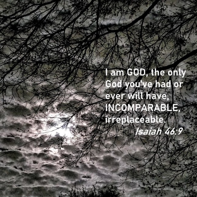 And then there is this: “I am GOD, the only God you’ve had or ever will have, incomparable, irreplaceable.” (v9, MSG).