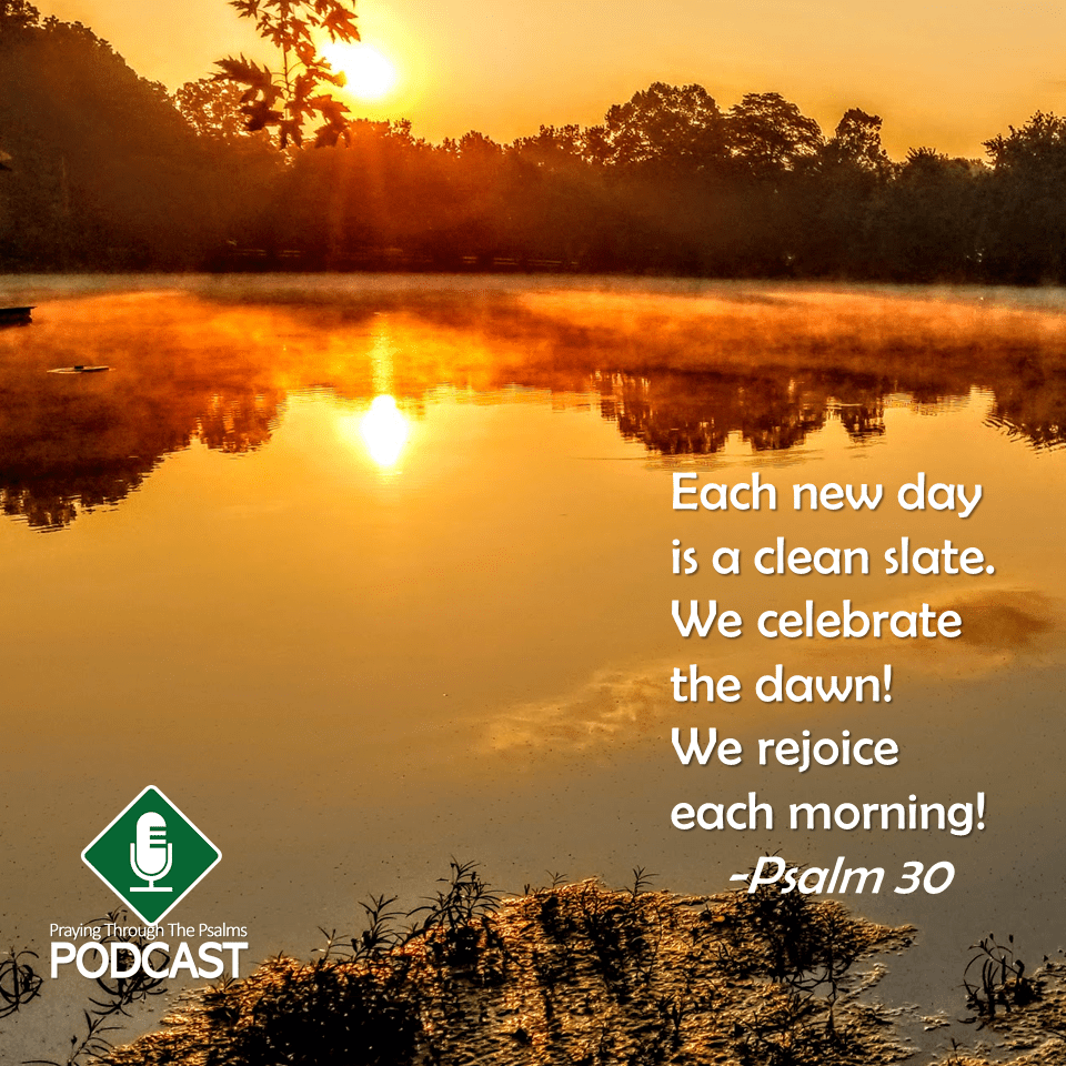 We sing to you. We honor your holy name. Help us to stay faithful to you so we can continue to praise you, great King. We thank you for your righteous anger that is displeased when people go against your ways. Yes, we thank you. And we rejoice that your love and your kindness are much more prevalent than your anger. There are some things in this life that will cause us weeping and sorrow. But each new day is a clean slate, with no mistakes in it. And so, we celebrate the dawn! We rejoice each morning!