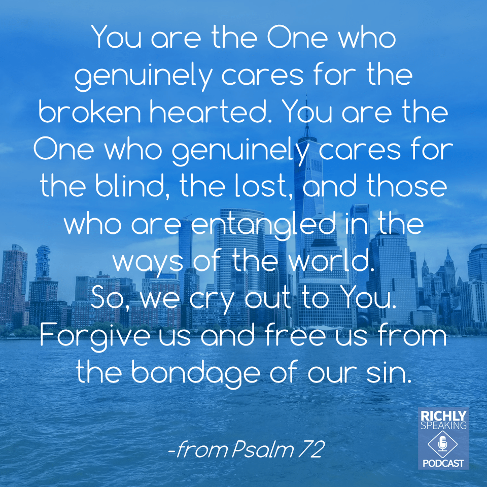 Yet, mighty God, we pray that you will be the One to meet all our needs. You are our great provider. We do not trust in the ways of man or woman, but we trust in you and you alone. You are the One who genuinely cares for those who are down and out. You are the One who genuinely cares for the broken-hearted. You are the One who genuinely cares for the blind, the lost, and those who are entangled in the ways of the world. So, we cry out to you. Forgive us and free us from the bondage of our sin.