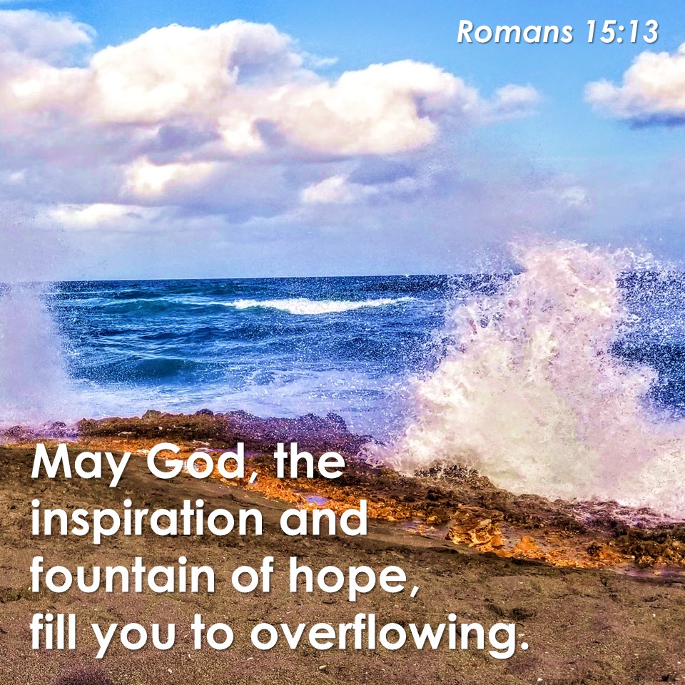 Now may God, the inspiration and fountain of hope, fill you to overflowing with uncontainable joy and perfect peace as you trust in him. And may the power of the Holy Spirit continually surround your life with his super-abundance until you radiate with hope! (v13, TPT).