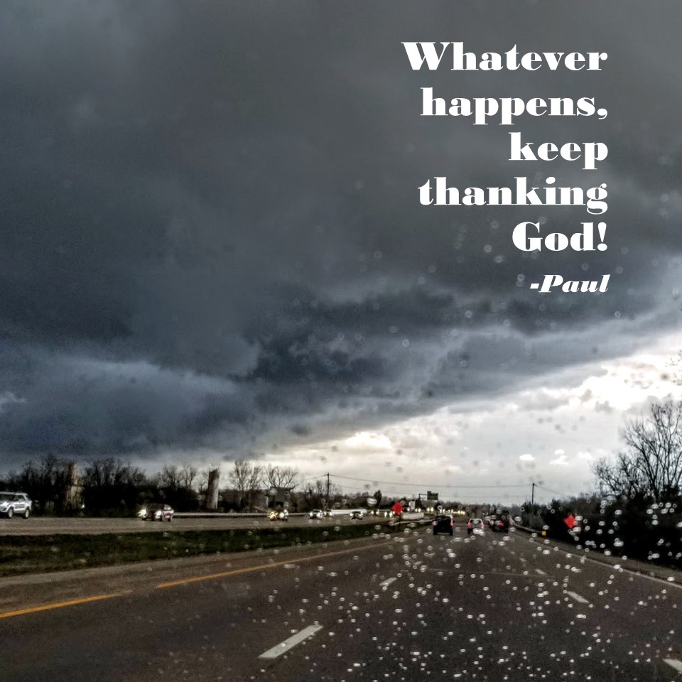 Even during a spring storm in the Midwest… keep thanking God. From 1 Thessalonians 5:18.