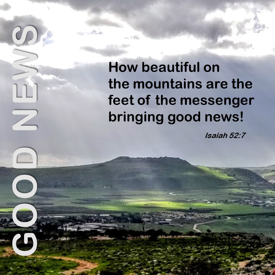 “How lovely on the mountains are the feet of him who brings good news, who announces peace and brings good news of happiness, who announces salvation, and says to Zion, ‘Your God reigns!’” (Isaiah 52:7, NASB).
