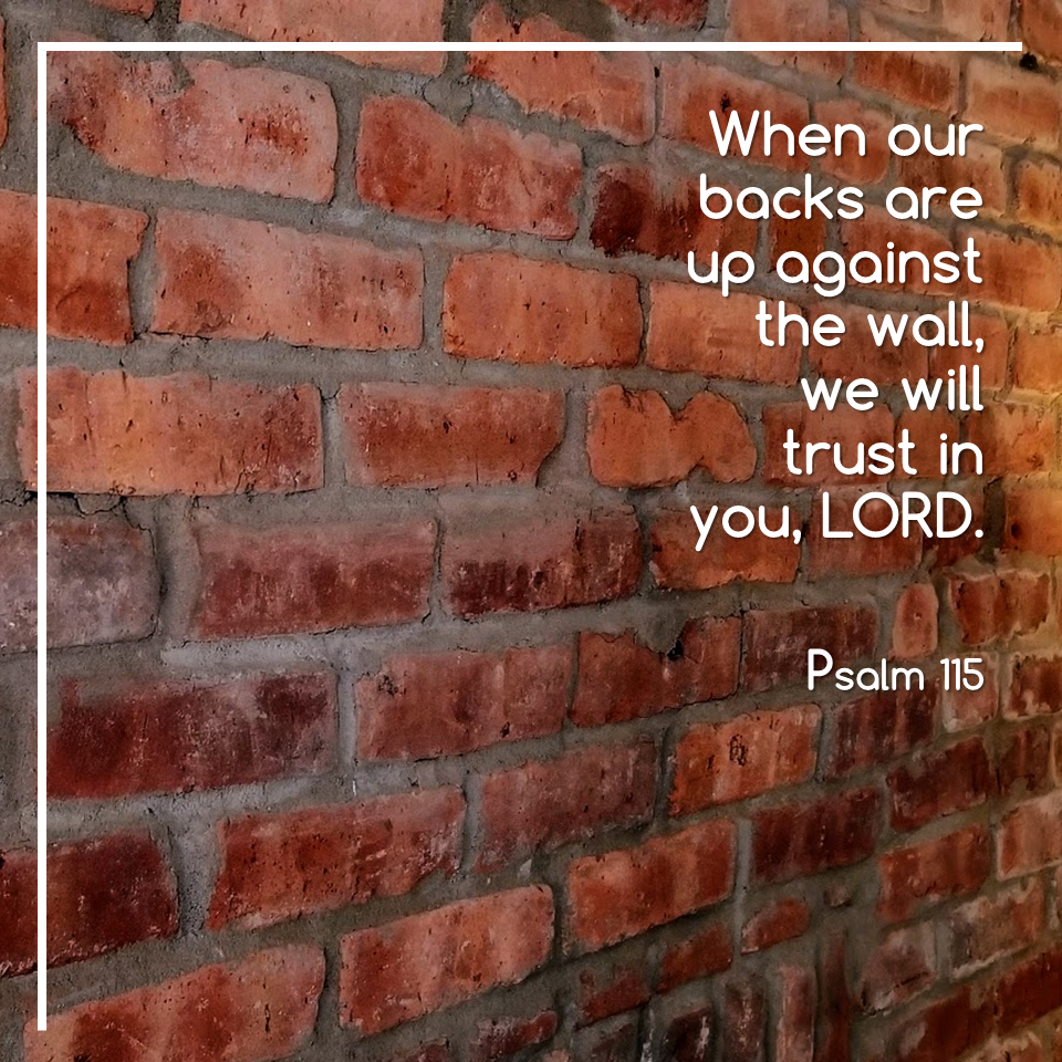 Give us the courage to trust only in you. When our backs are up against the wall, we will trust in you. When we find ourselves in situations that appear impossible, we will trust in you. When our hearts race in fear or anxiety, we will trust in you. You are the LORD, Yahweh, maker of heaven and earth. You will protect us. You will help us. Always.