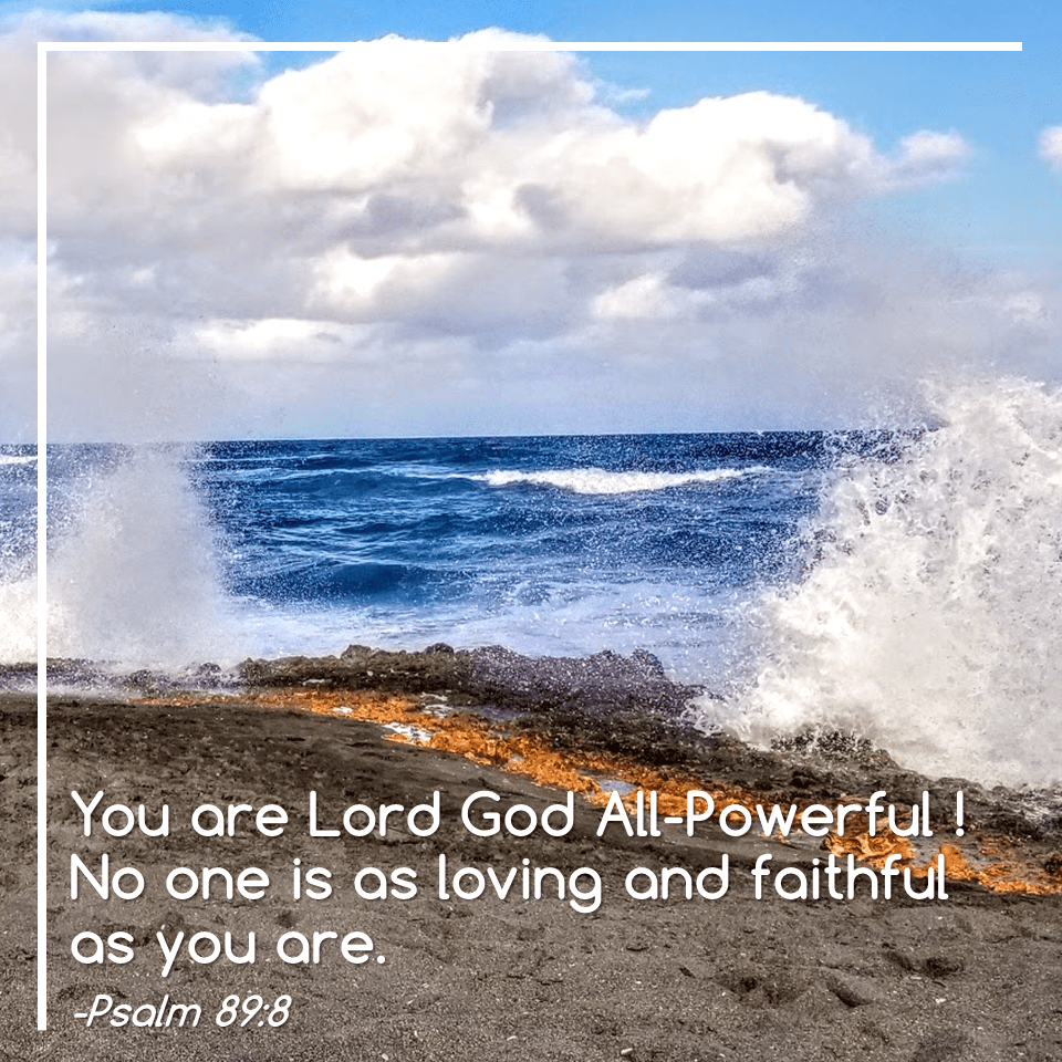 None who live in the heavens can compare with you. You are the most fearsome of all who live in heaven; all the others fear and greatly honor you. You are Lord God All-Powerful! No one is as loving and faithful as you are. You rule the roaring sea and calm its waves. You crushed the monster Rahab,and with your powerful arm, you scattered your enemies. The heavens and the earth belong to you. And so does the world with all its people because you created them and everything else.